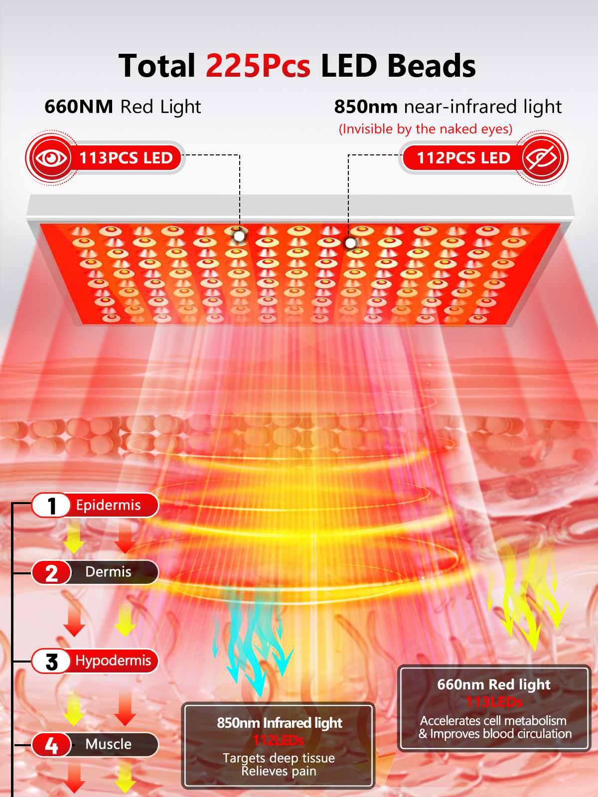 【Upgrade the Red Light Therapy Lamp Por】: 225 high-intensity LEDs (113 red for skin, 112 NIR for tissue) deliver deep-penetrating therapy. Powerful 45W output provides spa-level results at home, helping relieve arthritis, back pain, inflammation, and other skin concerns in 15-30 mins/session.