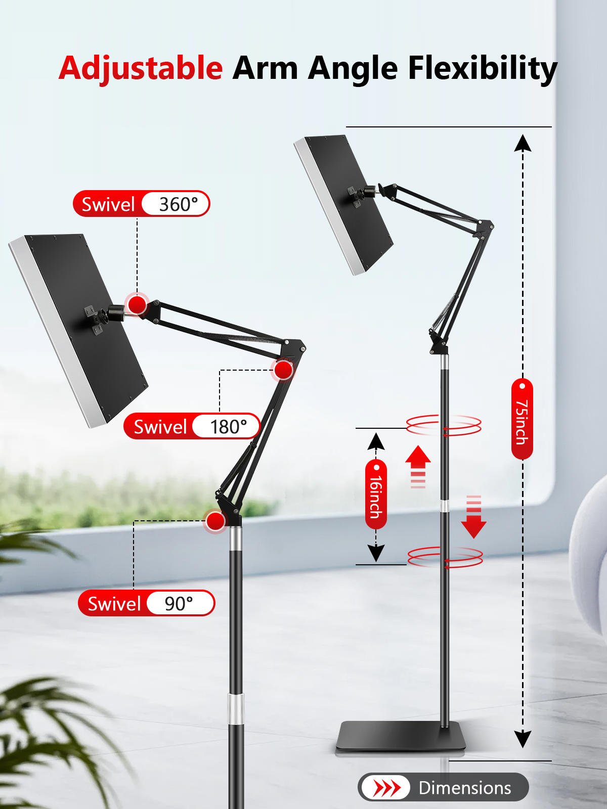【Ergonomic All-Scenario Design】: Flexible height adjustment (19.7"-70.9") + 360° rotating arm for face/body targeting; includes desktop clamp + spring stand for beds, desks, or floors. Whether indulging in a bedtime read, lounging on the couch watching TV, or engaged in a gaming session, the ROMISA lamp seamlessly blends into your surroundings without disrupting your activities.