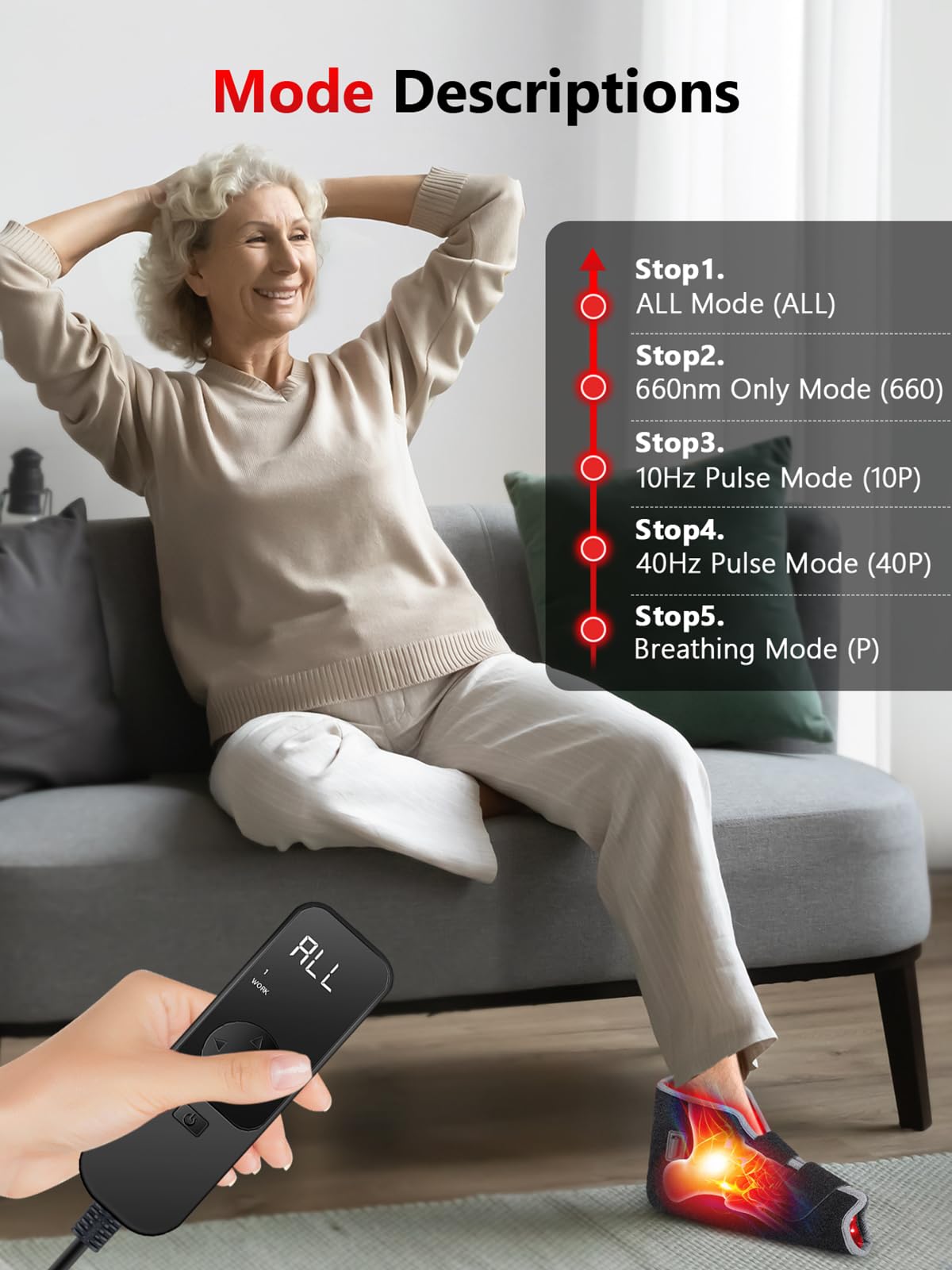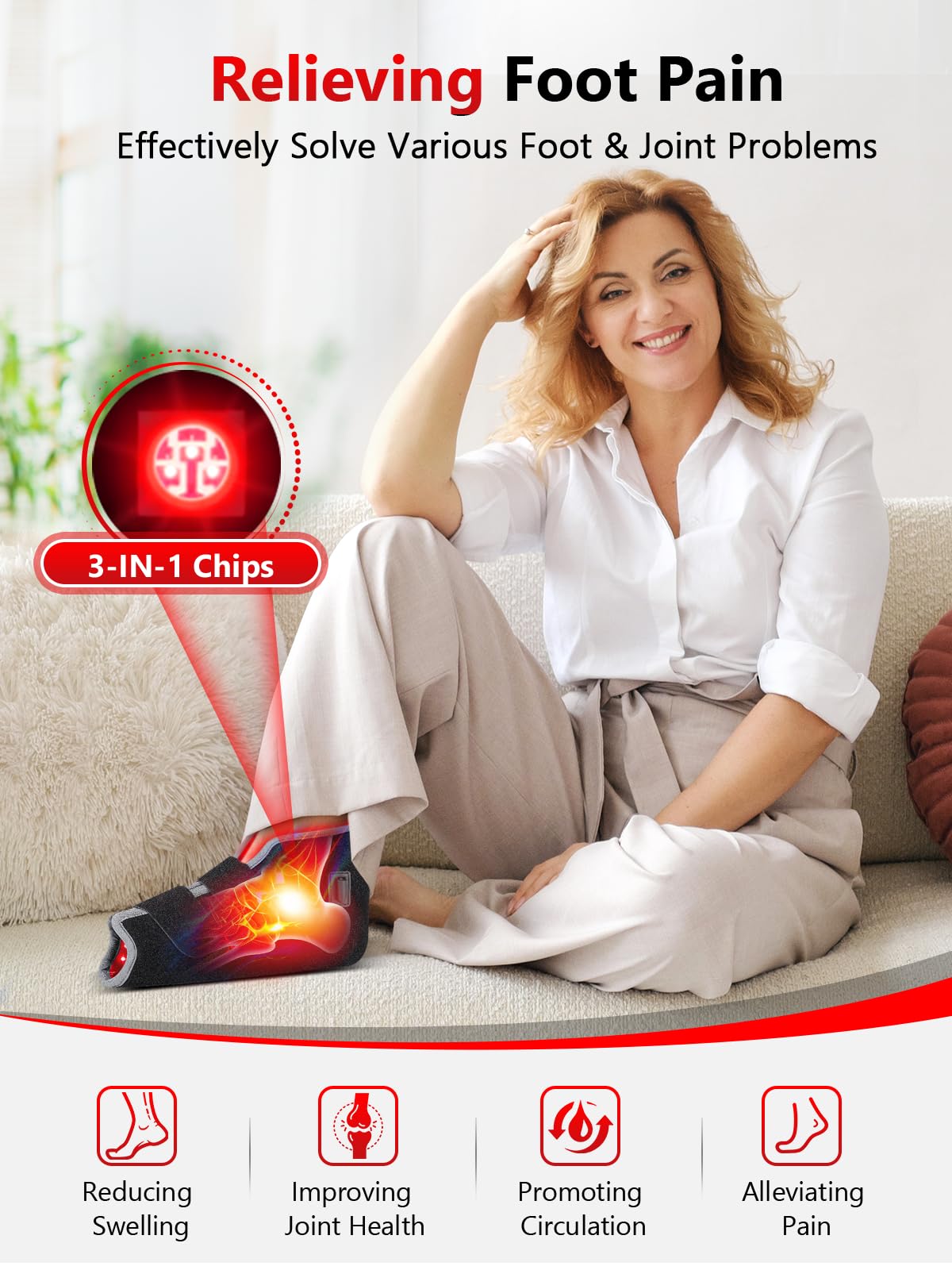 Red Light Therapy for Feet, 660nm & 850nm Near Infrared Light Therapy Heat Therapy Foot Wrap with Timer, Infrared Light Shoe for Foot Ankle Heel Joint Pain Relief.