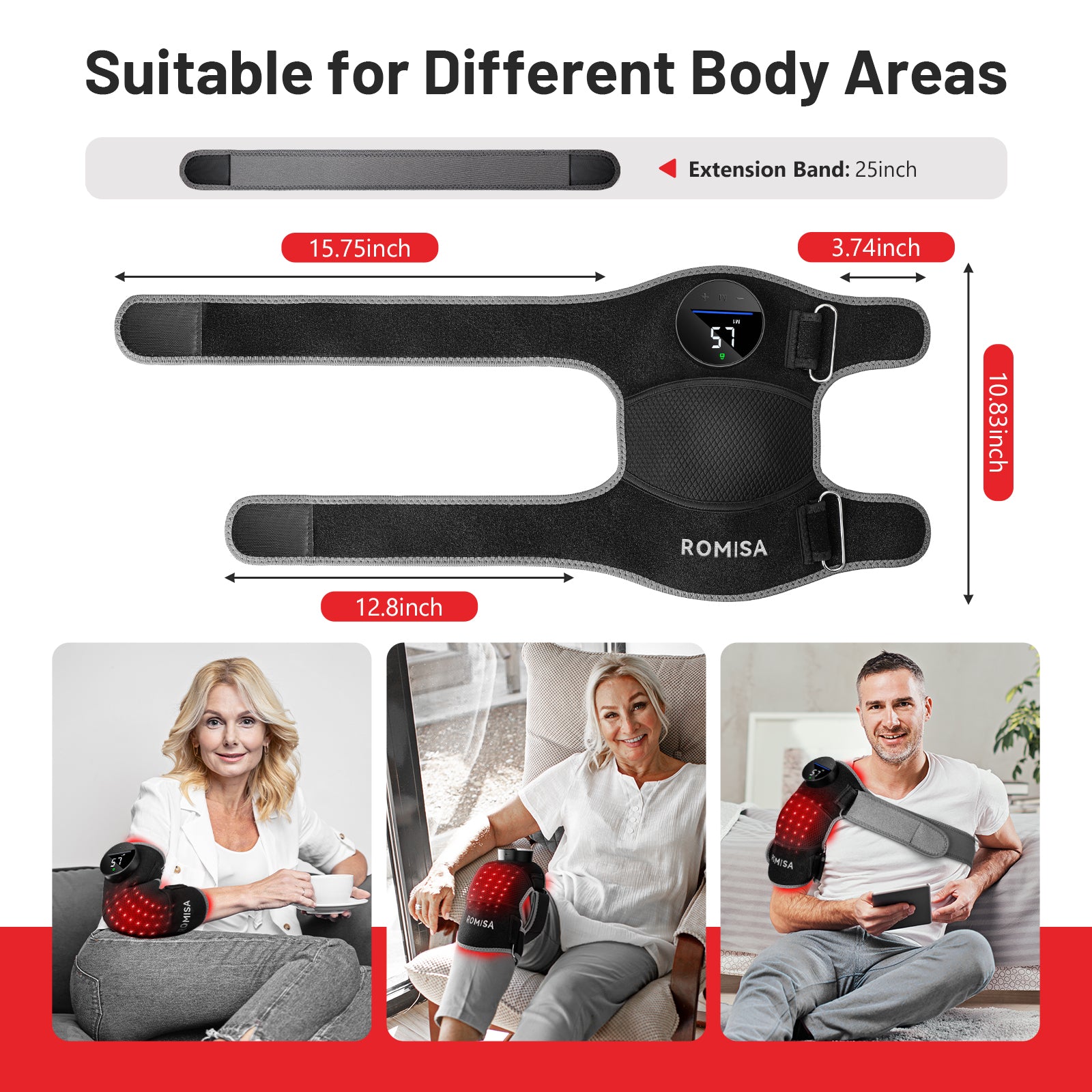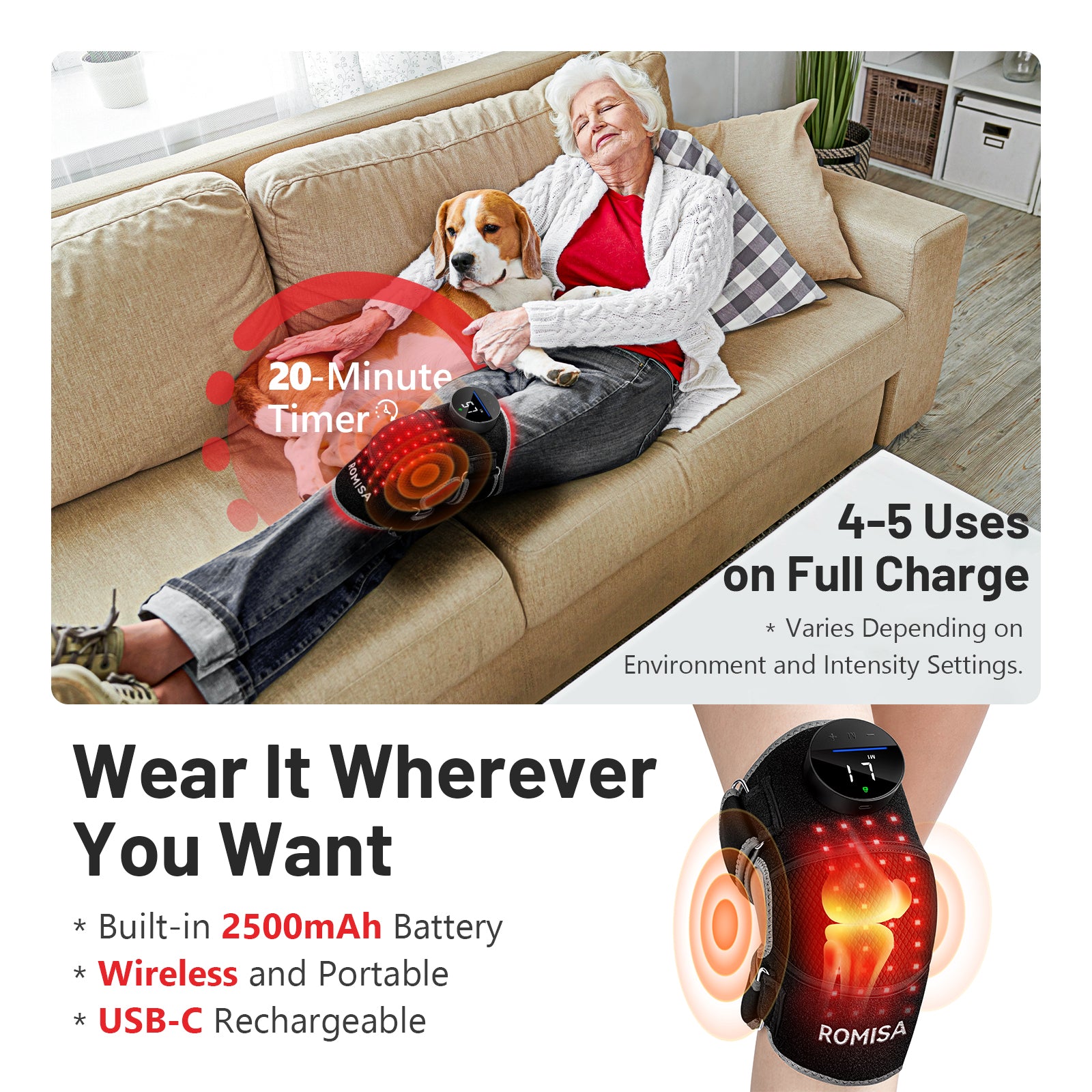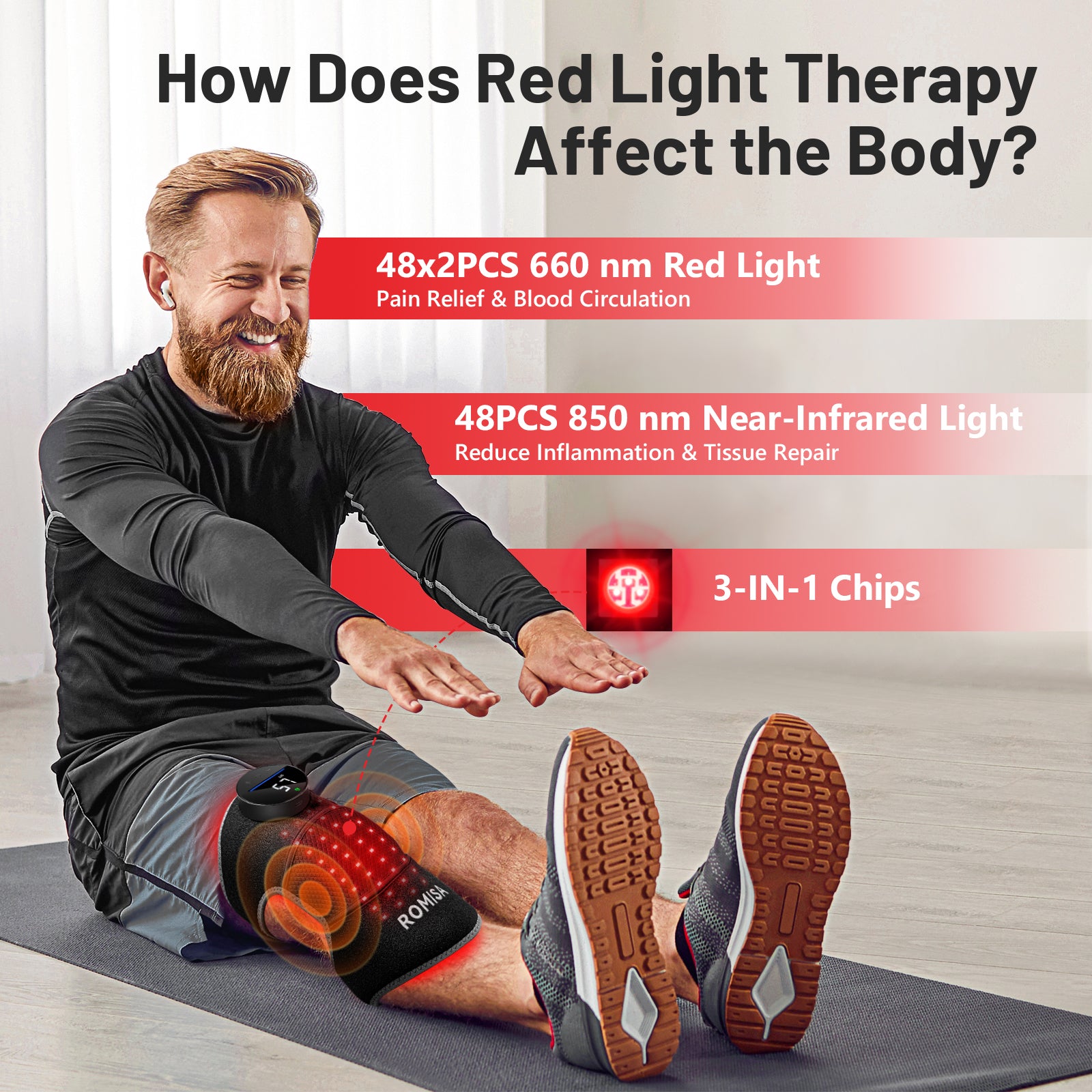 Red Light Therapy Knee Brace & Vibration Knee Massage for Pain Relief, 660nm & 850nm Rechargeable Near Infrared Light Therapy Device for Knee/Elbow/Shoulder Faster Recovery for Cordless Use