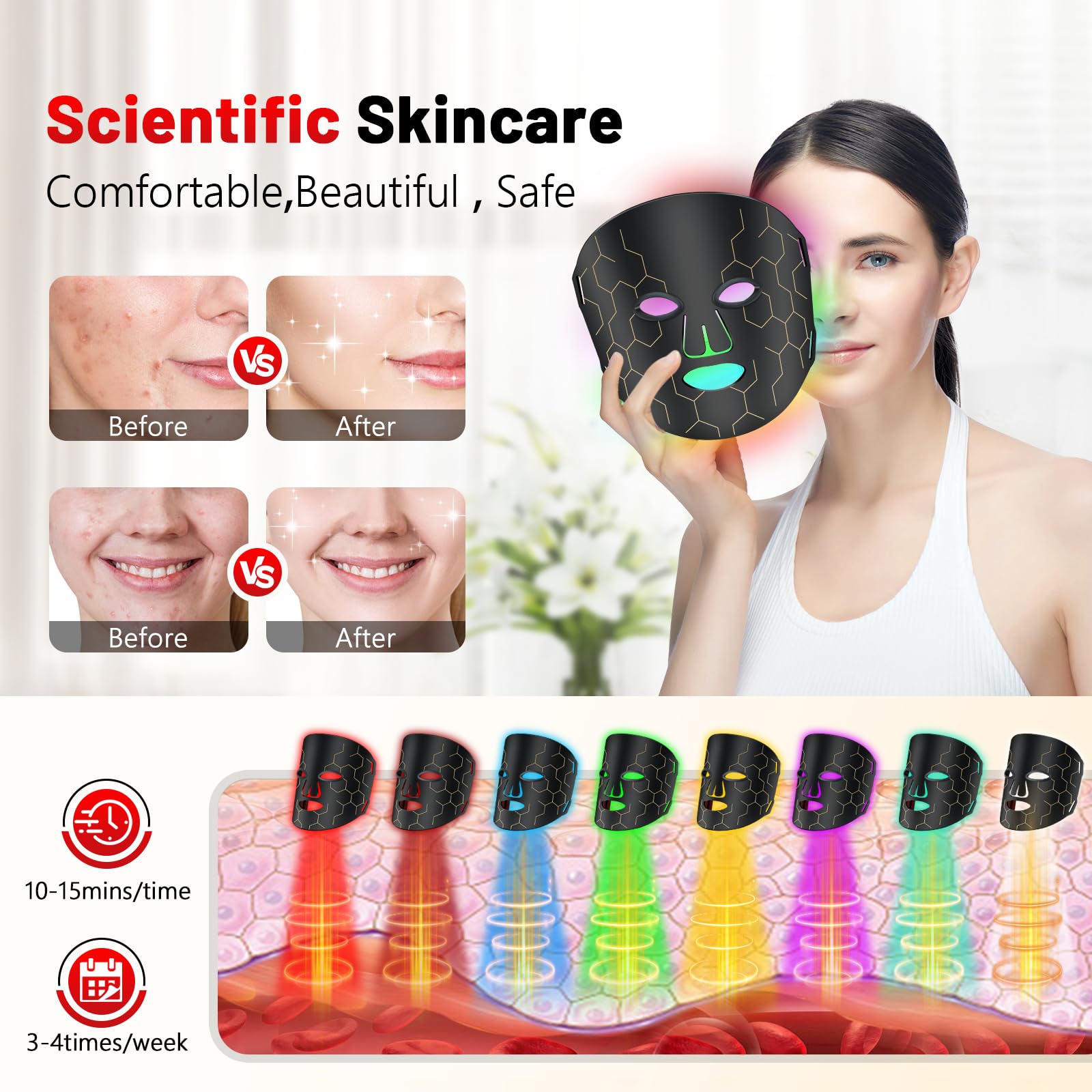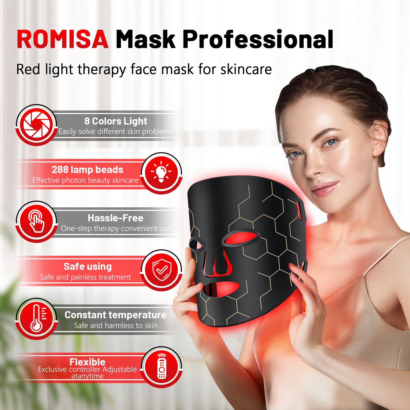 Red Light Therapy Mask for Face, 8-1 Colors Light Facial Skin Care Mask, Red Light Therapy Mask at Home, 660nm&850nm Infrared Light Therapy Device Mask with Timer Remote, FSA HSA Eligible